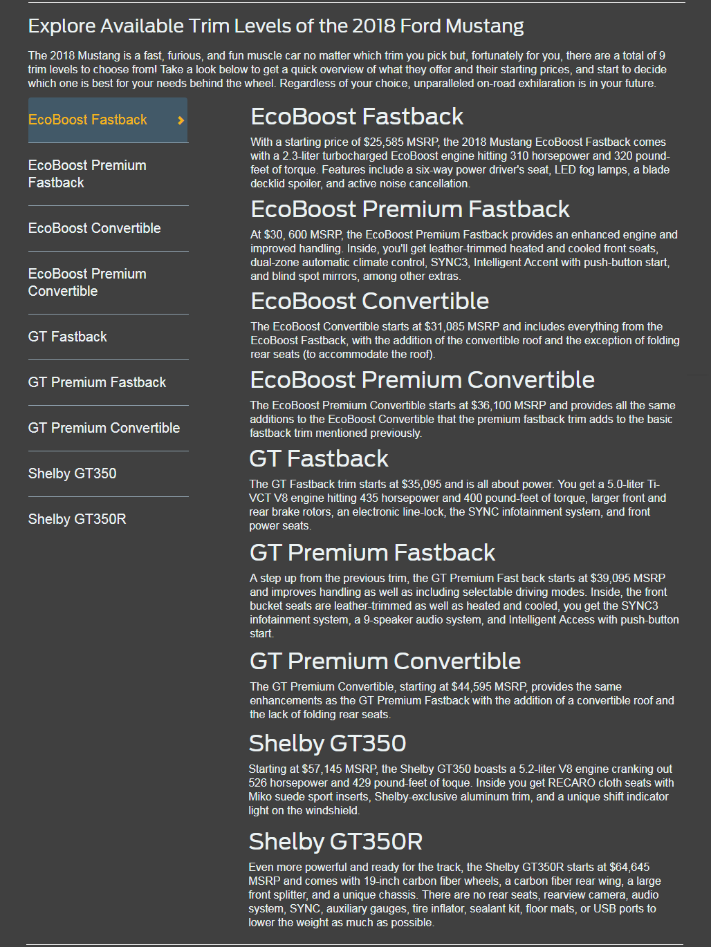 Don Davis Ford Lincoln – 2018 Ford Mustang Details and Trims